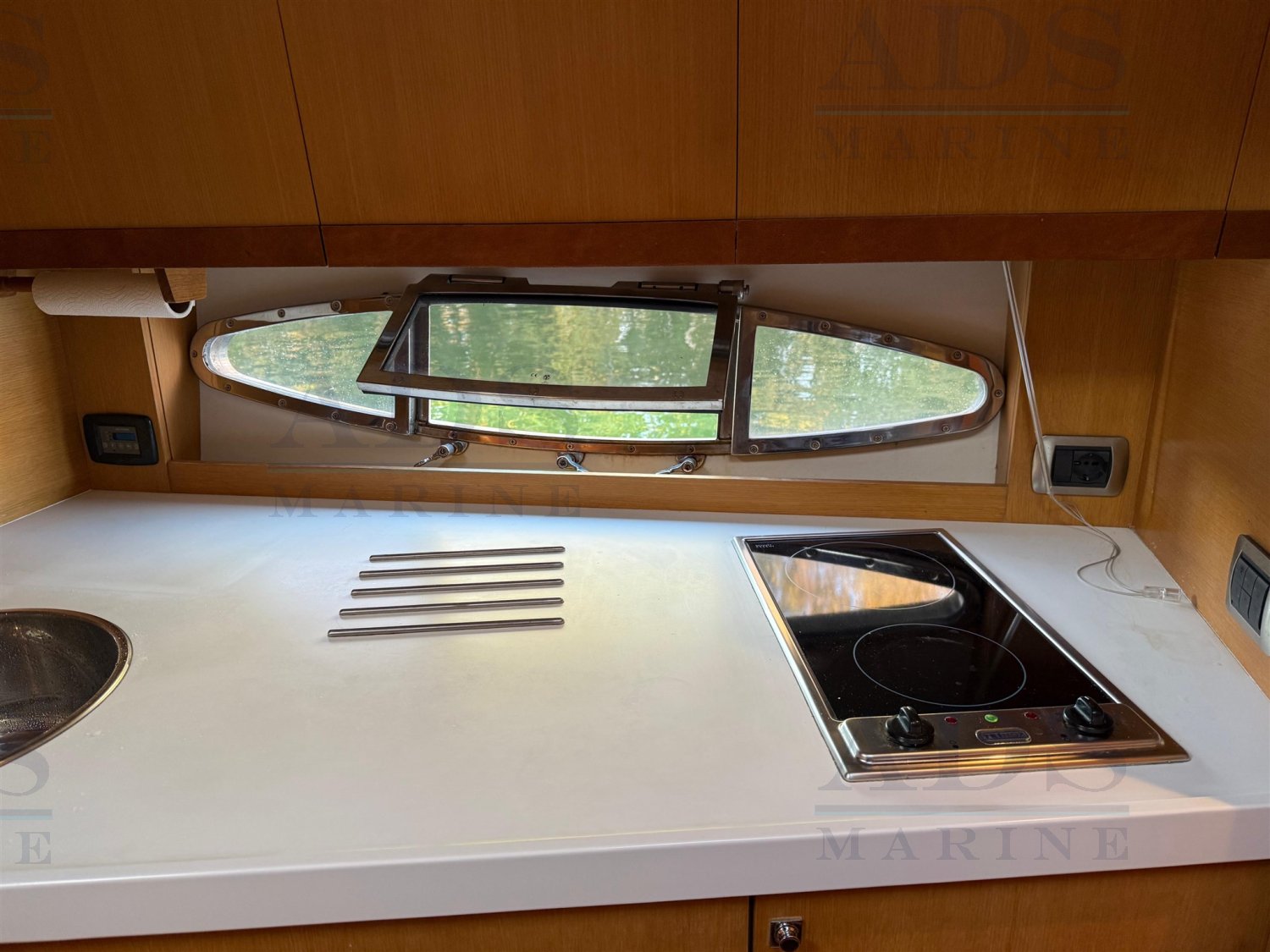 Cockpit: induction cooktop, refirgerator, sink